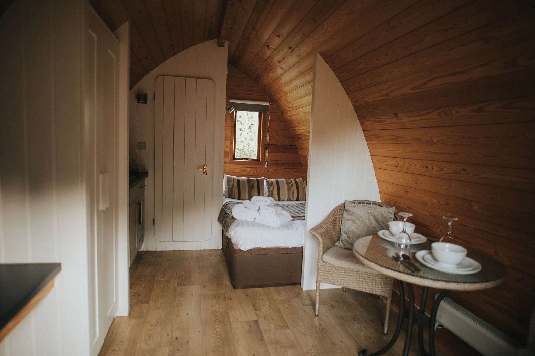 Perfectly sized for two, our pods offer all the essentials in a compact, clutter-free space. Set within the secret garden and surrounded by tall conifer trees, each pod invites you to relax under the stars with some offering a private outdoor hot tub.